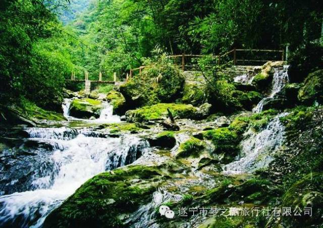 ; r* K0 ^' q" A8 @留在遂宁汗流浃背,不如湿身沁凉黑山谷 森林、幽峡、竹海、飞瀑、碧水、溶洞、仿古栈道、浮桥……水景随处可见的黑山谷,因其原始森林峡谷和丰富的原生水景,成为峡谷穿越、养生行走、观景戏水等活动的首选地。幽长绵延的鲤鱼河河谷,时而宽阔平缓,时而急促地蜷缩成狭窄的“V”字形;同时,沿路领略神龙溪、飞鱼瀑、梦纱瀑、神龙瀑等壮观水景,更有置身如梦如幻的人间仙境。 5 w" \3 y; l0 Z( u