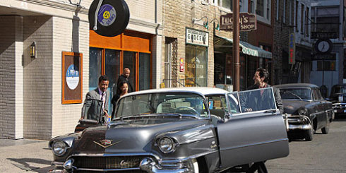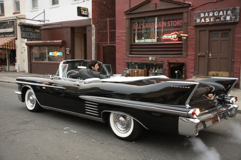 " R! |: v2 B" e1 @: @以下是《Cadillac Records》中几张有凯迪拉克出场的剧照: 事实上,就如人们知道的那样,凯迪拉克汽车早已是好莱坞影片中的常客,它至少已经在一百多部影片中客串出场,道具师们喜欢把它和显赫的、时髦的、有权势的人物放在一起,这些人物包括教父、孤胆英雄、总统、明星等等。作为美国豪华汽车工业的经典品牌,作为“美国梦”的化身,还有什么品牌比凯迪拉克更适合作为这些厉害人物的贴身伴侣的呢? 以下是从网上收集的一些凯迪拉克的经典剧照和海报,让我们一起在影片中共同领略这一传奇品牌的银幕风采: