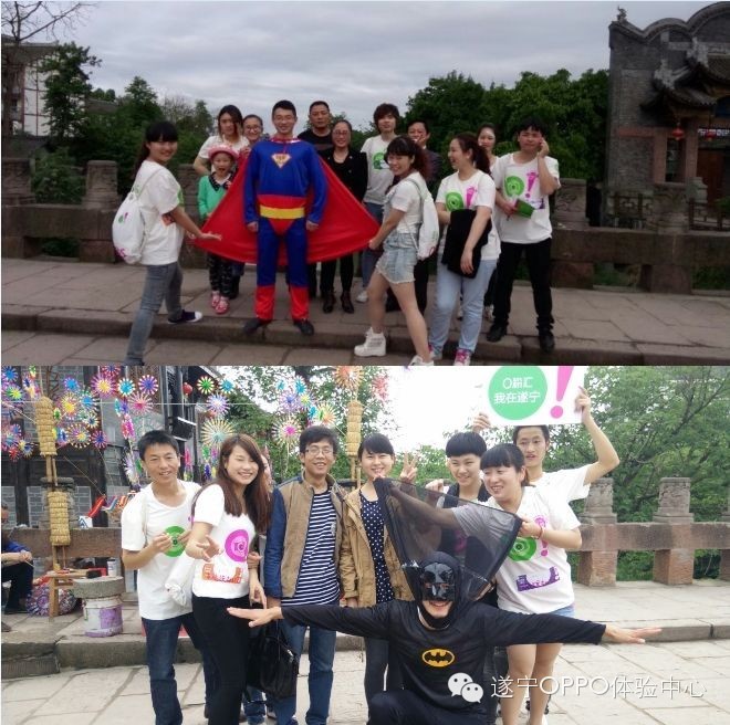 今天遂宁的阴天儿并没有影响陆续而来的O粉伙伴儿们的热情,签到领到背包和衣物后,大伙儿按耐不住心中的喜悦,在签到处摆起了POSE。下午一点半,随着一声“我是O粉,我在遂宁”,O粉们开始了遂宁之行。很快我们来到了拥有“中国观音之乡”美誉的遂宁龙凤古镇活动现场。